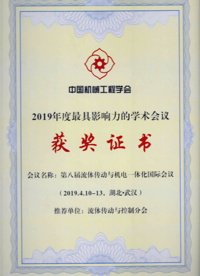 依托在北京機械工業(yè)自動化研究所有限公司的中國機械工程學會流體傳動與控制分會被中國機械工程學會授予“2019年度優(yōu)秀專業(yè)分會”稱號;由流體傳動與控制分會主辦的“第八屆流體傳動與機電一體化國際會議”被中國機械工程學會授予“2019年度最具影響力的學術活動”稱號。