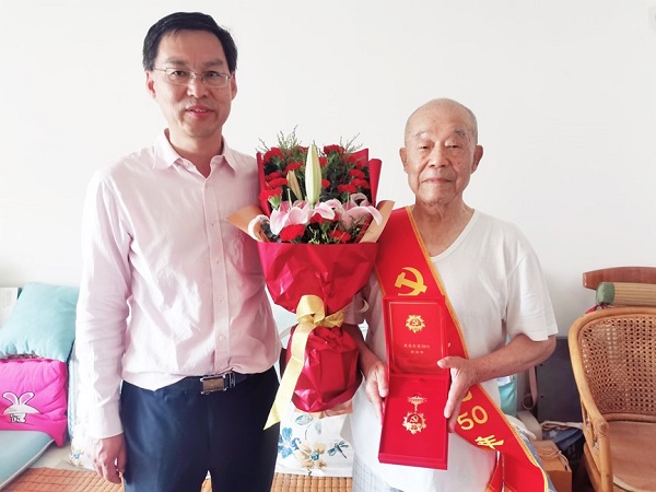 為慶祝建黨百年,黨中央首次頒發(fā)“光榮在黨50年”紀(jì)念章,既體現(xiàn)了黨對一路拼搏奮進的共產(chǎn)黨人的充分肯定,也彰顯了黨對老黨員們真誠熱切的關(guān)愛和關(guān)懷。