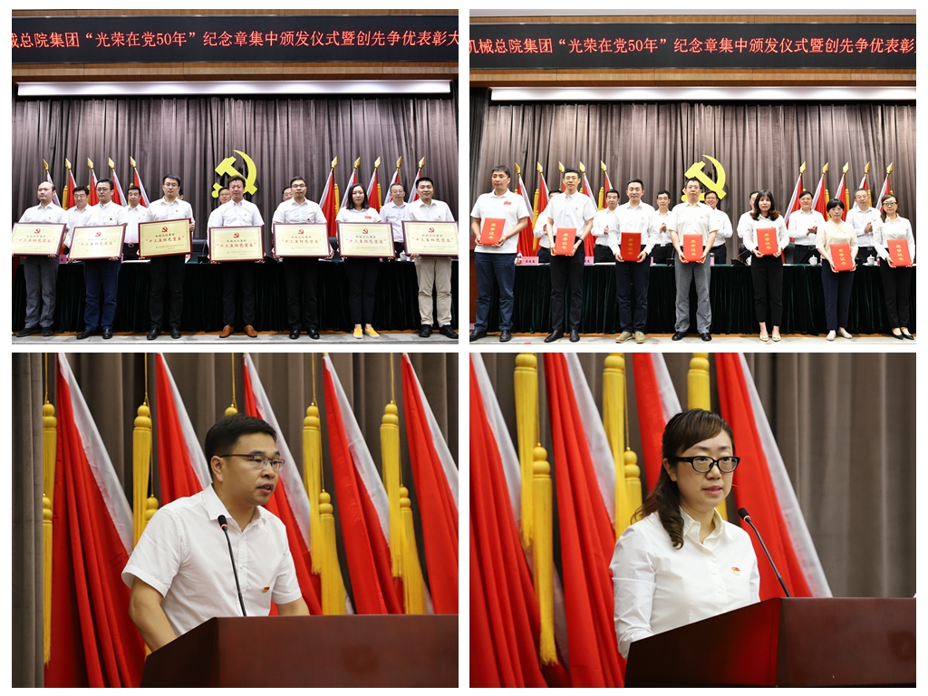 6月29日,機械總院集團在京召開“光榮在黨50年”紀(jì)念章集中頒發(fā)儀式暨創(chuàng)先爭優(yōu)表彰大會,深入學(xué)習(xí)貫徹習(xí)近平總書記重要講話和指示批示精神,慶祝中國共產(chǎn)黨成立100周年,表彰先進(jìn)、樹立典型,激勵引導(dǎo)各級黨組織和廣大黨員、干部員工開拓進(jìn)取、扎實工作、創(chuàng)先爭優(yōu),以高質(zhì)量黨建引領(lǐng)集團高質(zhì)量發(fā)展,助力集團“十四五”開好局、起好步。集團黨委書記、董事長王德成出席會議并講話,黨委副書記、總經(jīng)理王西峰主持會議,黨委副書記李玉鑫宣讀表彰決定,黨史學(xué)習(xí)教育中央企業(yè)第八指導(dǎo)組一行出席會議。