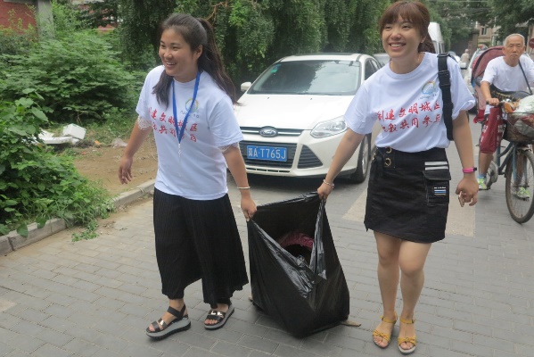 上午9點(diǎn),大家一同走進(jìn)人定湖西里社區(qū),積極分工合作,有的撿拾白色垃圾、有的清理綠化帶中的雜物、有的運(yùn)輸垃圾等。盡管烈日當(dāng)頭,蚊蟲叮咬,但大家毫無(wú)怨言,干勁十足,都在為做維護(hù)公共環(huán)境的實(shí)踐者和保護(hù)者盡一份責(zé)任。