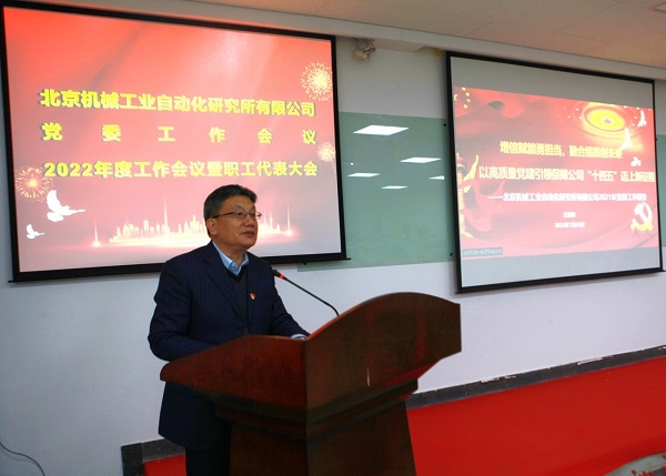 2022年1月24日,北自所組織召開了2022年度黨委工作會議,公司領導班子、中層干部、職工代表、獲獎代表等共80余人參加了會議。因防疫要求,會議分三個會場。會議由公司黨委副書記、紀委書記、工會主席岳秀江同志主持。