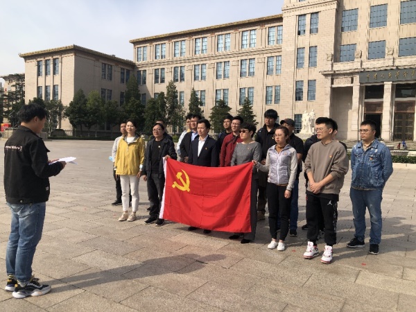 在鮮紅的黨旗下,支部書記陳傳軍帶領(lǐng)新老黨員們進行了集體宣誓,重溫了入黨誓詞。