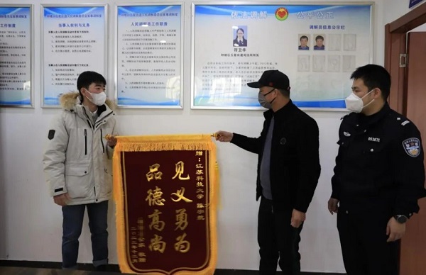 25歲的陳宇航目前在江蘇長江智能制造研究院有限責(zé)任公司實習(xí),是江蘇科技大學(xué)的研二學(xué)生。12月20日晚,陳宇航夜跑至五星橋時,突然聽到有一個微弱的女聲在喊救命。他發(fā)現(xiàn)有一個人仰面躺在河里,已經(jīng)嗆水,隨時有下沉的可能。“不能等了,必須救人。”報警后,陳宇航?jīng)]有一絲猶豫,在逼近0度的寒冬里,把衣服脫得只剩下一條褲衩,從3米左右的駁岸上跳進(jìn)了冰冷刺骨的河水中。經(jīng)過一番努力,陳宇航在水中艱難的帶著女子游到岸邊等待救援。很快,110和119先后趕到現(xiàn)場,落水女子成功獲救。12月22日下午,落水女子的哥哥向陳宇航送上“見義勇為 品德高尚”的錦旗。